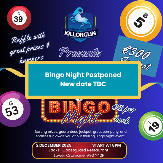 Due to a bereavement tomorrow nights Bingo Club Fundraiser has been postponed.